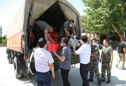 8月12日中午,一师阿拉尔市托喀依乡乡长艾尼瓦尔·玉素甫一行带着300公斤葡、300公斤香梨、50件矿泉水、50箱方便面、8只羊等物资,看望慰问我校抗疫一线人员。党委副书记、纪委书记单洪山,党委常委、组织部部长马智群,有关部门主要领导参加。慰问活动在学校正南门外侧进行。