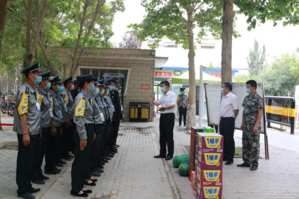 赵光辉先后来到学校南门、北门、大学路派出所,代表学校党委对保卫部执勤人员、派出所民警表示亲切问候。他表示,校门管理是学校疫情防控和校园安全管理中最重要的一个环节,我校保卫执勤人员长期坚守工作岗位,扎实做好防风险、战疫情的各项工作,严格执行校园封闭管理,为全校师生的安全提供了坚实保障,筑起一道防御疫情的安全墙。大学路派出所的民警们对校园治安起到了至关重要的作用,你们舍小家、顾大家,恪尽职守,维护校园治安秩序,保障师生安全,为平安校园建设做出了巨大贡献。他叮嘱大家,要全力以赴落实好学校疫情防控、校园封闭管理各项工作的同时,要做好个人防护和防暑工作,确保身体安全、健康。