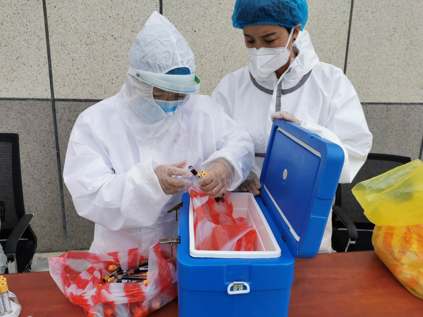 检测前,通知相关人员有序参与,做好防护,确保不漏一人,不放过任何一种潜在危险的可能性。在各采集点,被采集人员有序入场,现场医护人员穿着密不透气的防护服,各司其职,有序采集。采集到的核酸样本,由专人接送到指定医院进行检测。