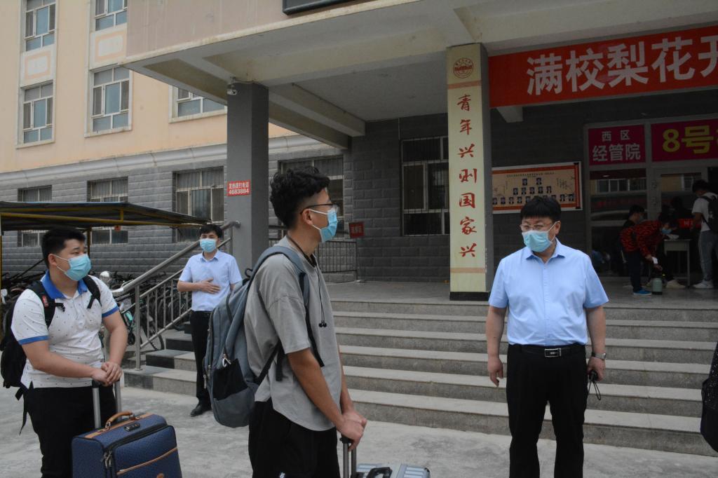 校领导早早来到现场守候,迫切等待同学们健康平安返校。看到一辆辆大巴车驶进校园,同学们纷纷走下车,校领导上前与同学们亲切交谈,热烈欢迎同学们返校,让同学们深受感动、倍感振奋。