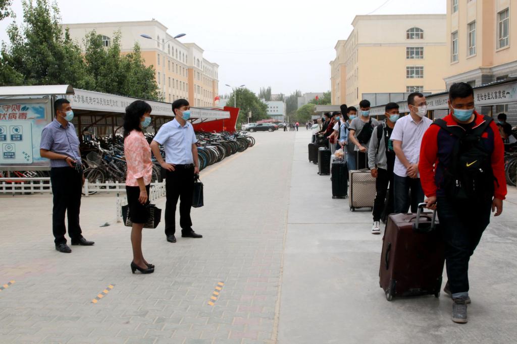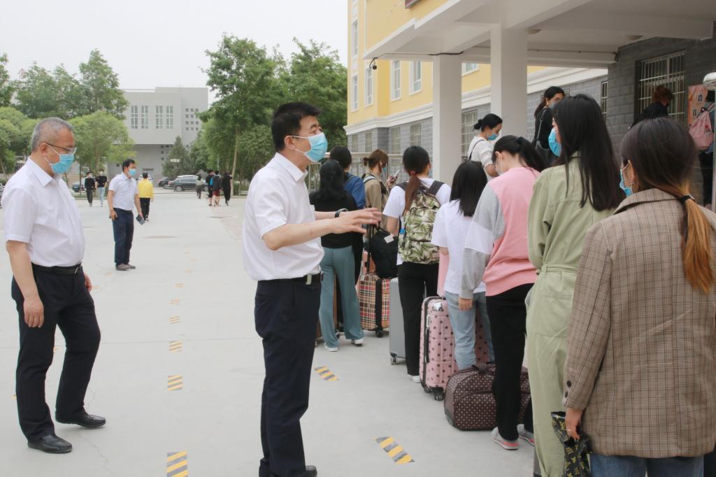 为确保疆内学生安全健康顺利返校复课,5月10日中午,塔里木大学党委书记赵光辉,党委副书记、校长张传辉,党委副书记、纪委书记单洪山,党委副书记张爱萍,党委常委、副校长卢光志,副校长张利莉,党委常委、副校长曲义勇、于军、石长青,以及全体处级干部及教师代表,在学校南门、学生公寓前迎接疆内返校学生的到来,现场指挥协调返校学生交通疏导、信息登记、健康检测、消杀毒、入住手续办理、餐饮供应等各项工作。