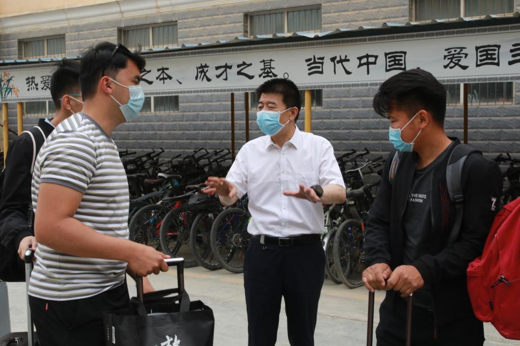 校领导叮嘱同学们一定要自觉服从学校管理和安排,做好个人防护,勤洗手、多通风、少聚集、多锻炼,吃好、睡好、休息好、学习好,以健康向上的心态、积极昂扬的姿态进行校园学习生活。