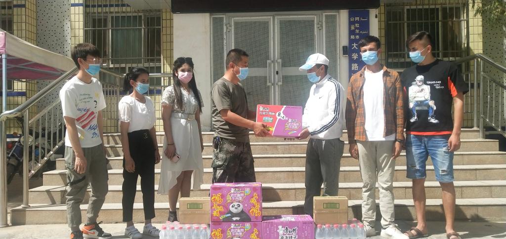 5月24日,动科院交友学生庆祝肉孜节之际,在学院院长陈伟、党委副书记魏晓柳、副院长任道全带领下,分别向校医院、后勤处、保卫部工作人员及宿舍楼值班人员送上了真挚的感谢和祝福。