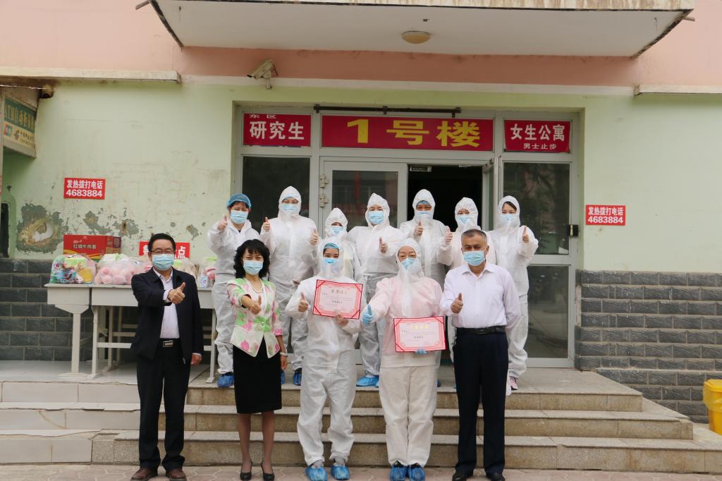 弘扬胡杨精神、劳动精神,克服艰难险阻,在平凡岗位上续写不平凡的故事。在“五·一”国际劳动节之际,5月1日上午,党委书记赵光辉,党委副书记、校长张传辉,党委副书记、纪委书记单洪山,党委副书记张爱萍,党委常委、副校长卢光志,副校长张利莉,党委常委、副校长曲义勇、于军、石长青,分为九组到学校各宿舍楼、阿拉尔市各有关宾馆,看望慰问入住教职工、安保人员、医护人员和保洁人员等返校复学和疫情防控一线工作人员。