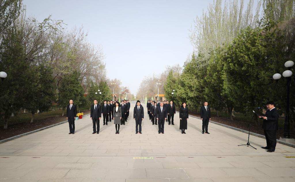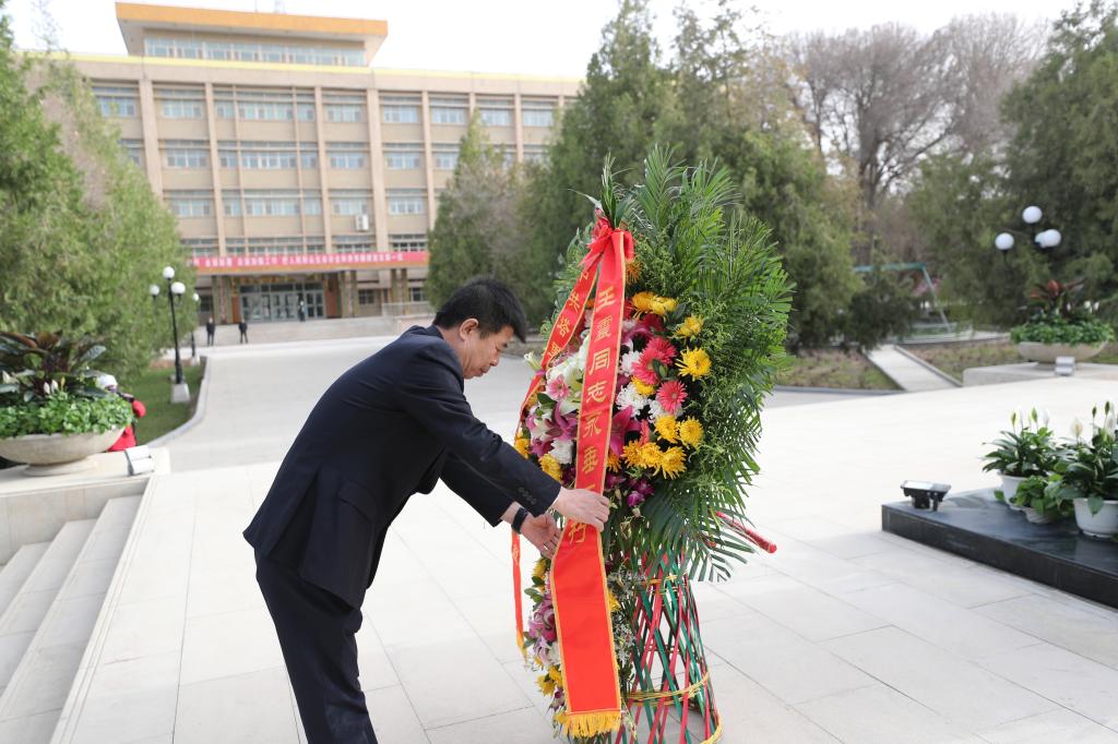 4月4日上午,塔里木大学党委副书记、校长张传辉在主持缅怀先烈向王震将军铜像敬献花篮仪式时说。