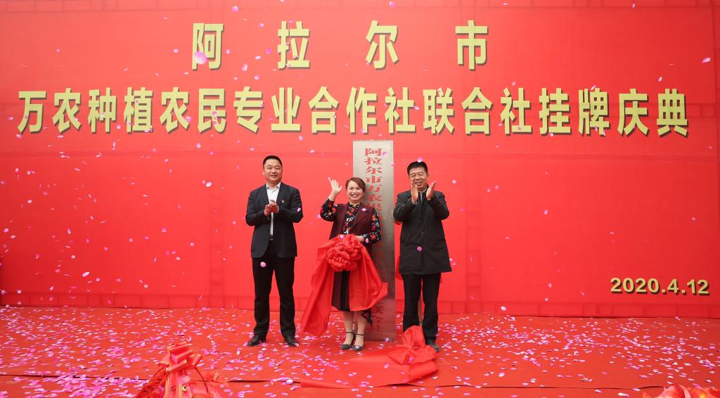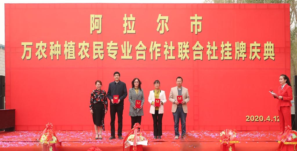 仪式上,赵光辉与尤良英,十三团党委书记、政委祁裕共同为联合社揭牌,马荣华为联合社授牌。