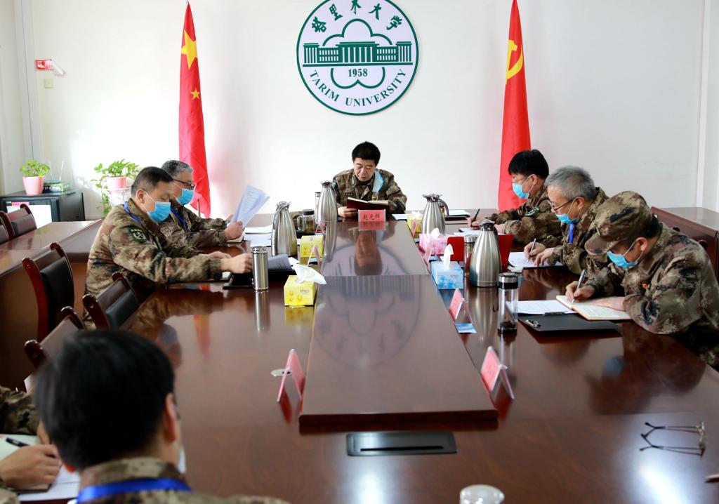 赵光辉主持会议,传达学习了兵团主要领导关于做好学校疫情防控工作的重要指示精神,进一步安排部署学校疫情防控工作。他指出,做好疫情防控工作,直接关系师生员工的生命安全和身体健康。当前,疫情防控工作到了最吃劲的关键阶段。我们要按照坚定信心、同舟共济、科学防治、精准施策的总要求,突出重点、统筹兼顾、分类指导、分区施策,落实好联防联控措施,严防死守,管好校园,扎实做好对师生的劝返工作,切实把疫情防控各项工作抓实、抓细、抓落实,筑牢群防群治的严密防线,在大战中践行初心使命,在大考中交出合格答卷,坚决打赢疫情防控的人民战争、总体战、阻击战,守护好全体师生员工的生命安全和身体健康。要按照教育部、自治区教育厅和兵团教育局相关要求,认真做好理论课线上授课相关准备工作,保证疫情防控期间教学进度和教学质量,实现“停课不停教,停课不停学”,提前做好延迟开学相关工作应急预案。要做好宣传教育和舆论引导工作,广泛组织开展网上宣传教育活动,深入宣传党中央重大决策部署,充分报道学校联防联控的措施成效,生动讲述防疫抗疫一线的感人故事,讲好塔大抗击疫情的故事,展现各族师生团结一心、同舟共济的精神风貌,凝聚众志成城抗疫情的强大力量。