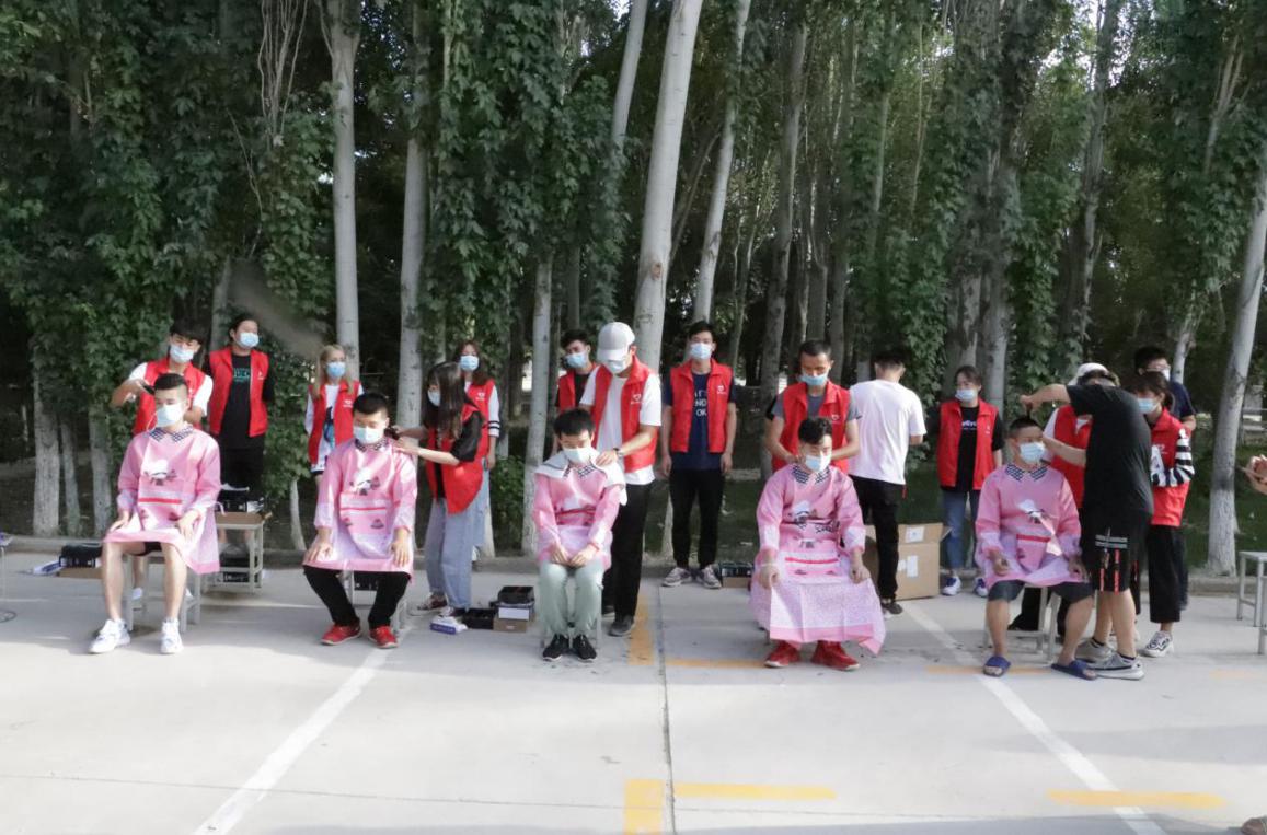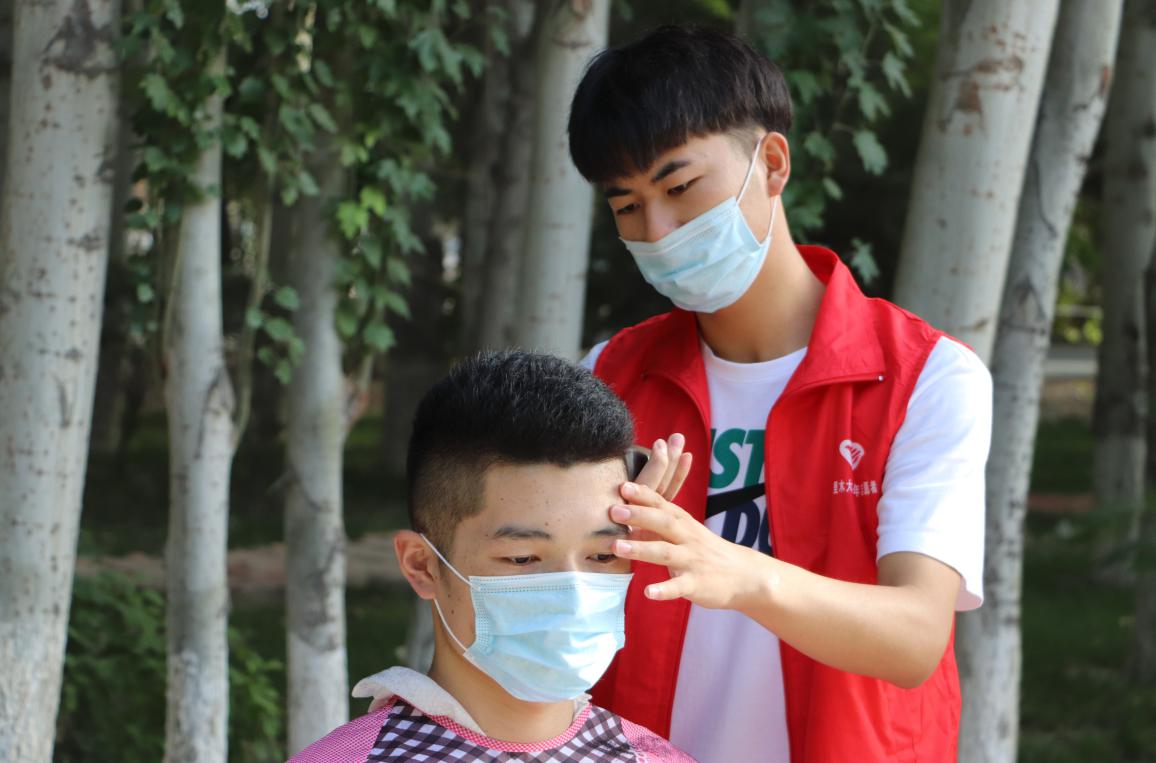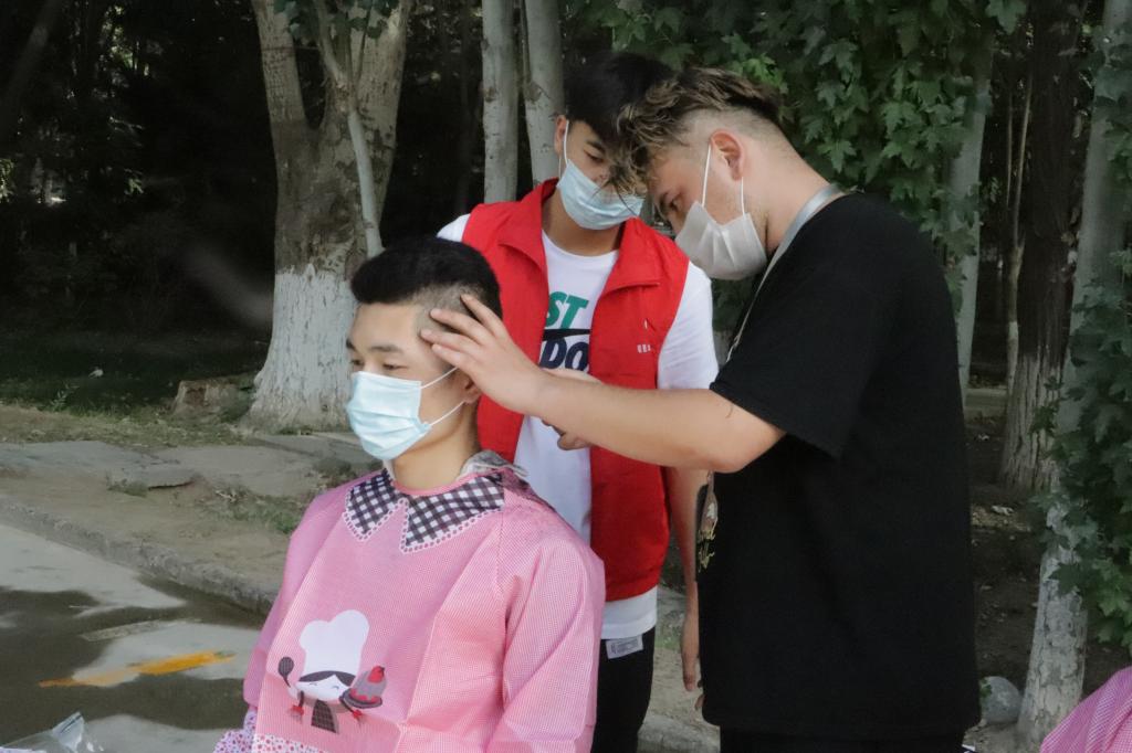 疫情期间,学校进行网格化管理。为保持学生良好的仪容仪表,倡导积极向上的精神风貌,打造一个良好和谐的生活氛围。8月12日下午,学校招募理发师在东区和西区户外一边为学生义剪,一边对志愿者进行理发培训。