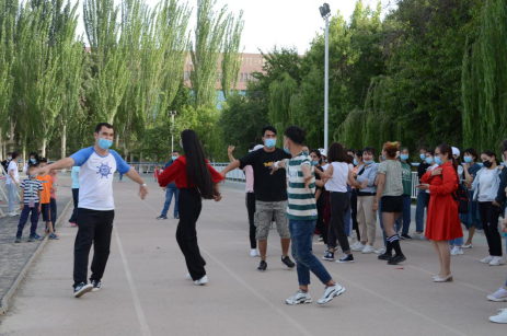 (生科院教职工操场与交友学生跳民族舞共度节日)