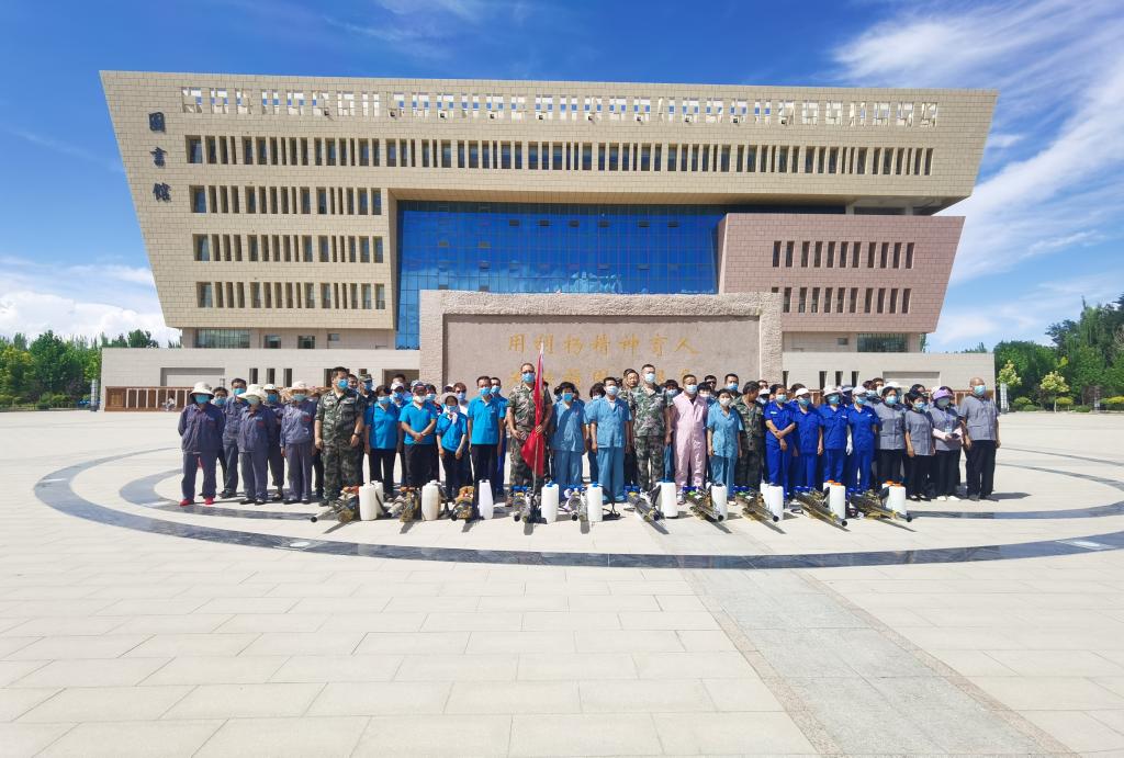 7月22日下午,在疫情防控期间,后勤管理处党总支第三党支部组织支部(全体)党员、物业(修缮)服务中心、水电暖服务中心全体员工及公共楼宇保洁服务外包公司共百余位同志对学校全部41栋公共楼宇进行空间消杀。在消杀作业开始之前,后勤管理处党总支第三支部书记杨瑶同志进行“战前动员”并进行了授旗仪式;在消杀作业开始时,由受邀的第一师阿拉尔市“胡杨救援队”队员现场示范专业消杀作业程序,全体人员协调配合,合理分工开始消杀工作,党委常委、副校长于军同志主动参与消杀工作。