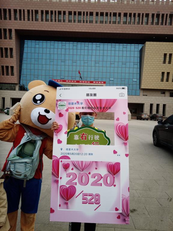 在小市场,一位正在路口值班的学生志愿者告白学校:“塔大,我爱你!”志愿者虽然辛苦,但仍对学校充满感激,并用实际行动回报母校。