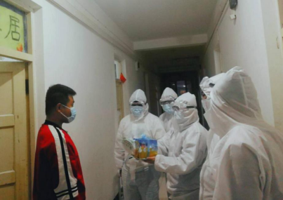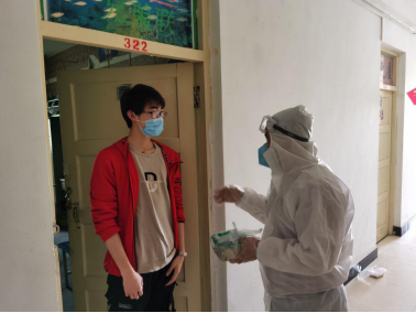 老师每天任劳任怨的对楼道的每一个角落进行清扫消毒,为了避免和学生在上厕所和洗漱期间有密切接触,采取错峰清扫;还经常巡逻,并且每天监督学生出门必须要戴口罩,间隔一米,保持距离;在宿舍时,时常提醒学生要开窗通风,保持清新的空气等等。有声的督促,无声的温柔,弥漫在四号楼三层的楼道间。