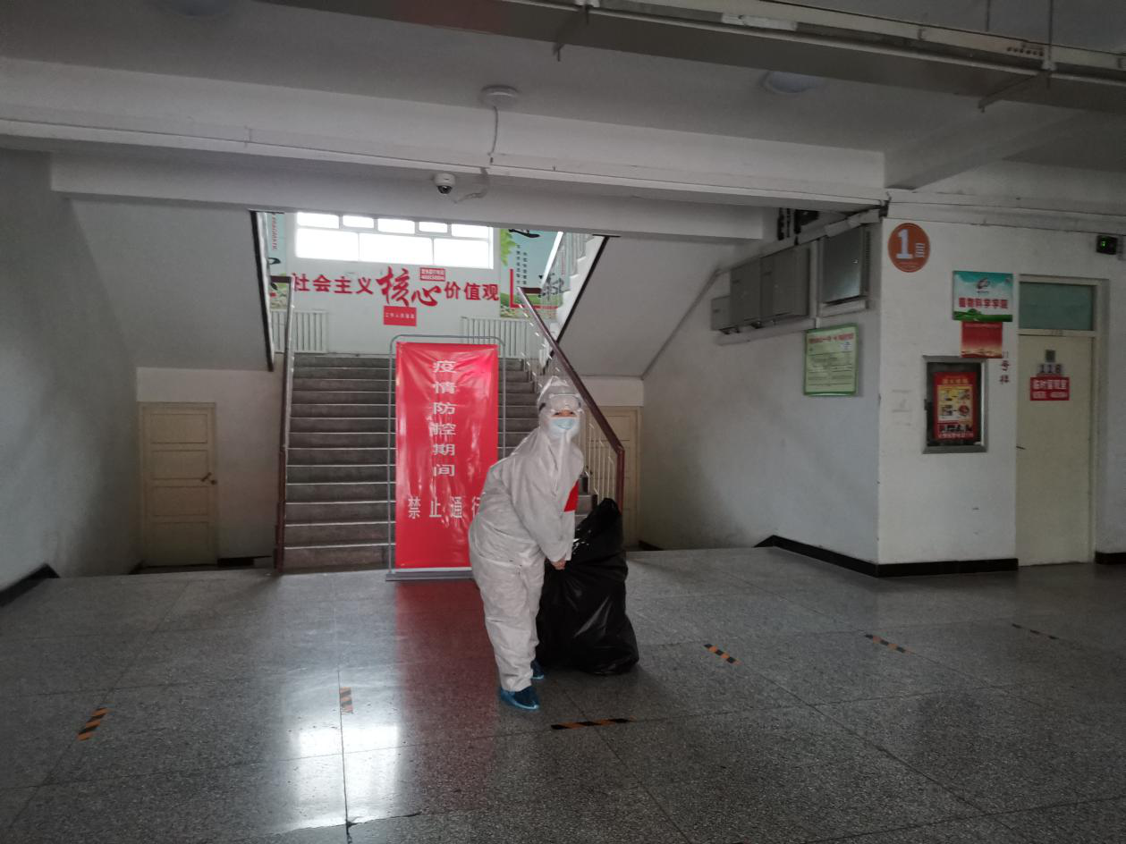 曹琦住楼期间,主要负责配送二楼一日三餐、体温上报、饭菜发放、垃圾清运等日常工作。
