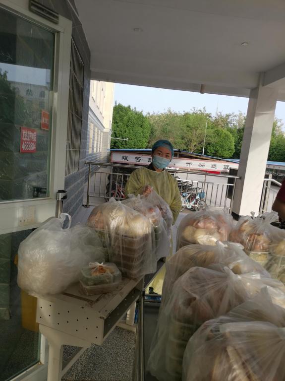 由于东区11号宿舍楼,入住学生多,工作量大,曹琦还主动帮助其他楼层的老师搬运饭菜、生活用品和清运垃圾。
