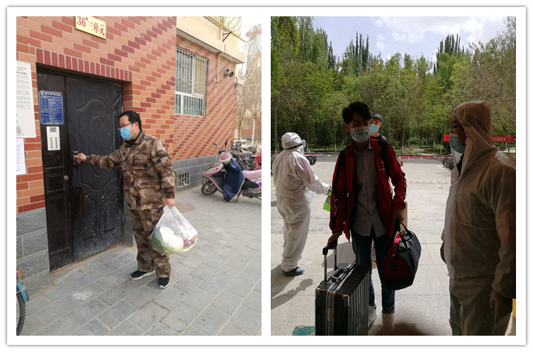 入住宿舍以后,夏占峰和韩占江老师经历了多个角色转变,展现了两位老师的责任担当。夏老师从东区8号楼楼长,到阿克苏龙腾宾馆楼长,又回到东区8号楼四层长。韩老师从东区2号楼层长,到8号楼楼长。4月22日-25日,夏老师入住阿克苏各宾馆服务返校学生,由于学生人数多、流动性大、工作人手不足,工作强度大,他平均每天只能睡3-4个小时。除了迎接学生、送饭、回收垃圾、做好消杀基本工作之外,还要尽可能多地与学生沟通,安抚学生的情绪,化解学生的疑虑,解决学生的生活需求。谈到在阿克苏各宾馆的工作,夏老师说:“我深感责任重大,脑中的那根弦始终绷得紧紧的,不敢有一丝懈怠,学生也很给力,理解学校的安排,体谅老师们的辛劳,期间有多个学生提出当志愿者,减轻了我们的工作压力,感觉学生们经过疫情的洗礼长大了、成熟了!”