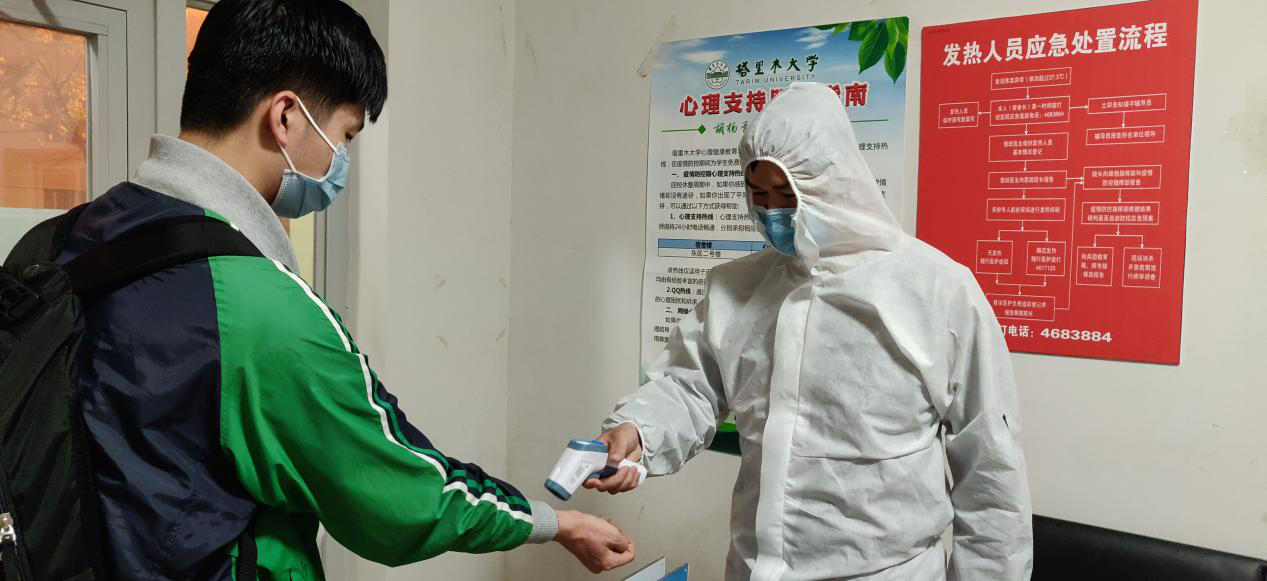 接到学校的通知,需要教师在学生返校期间入住宿舍,负责返校研究生的疫情防控工作。接到通知,他即刻前往东区2号楼研究生公寓,担任一楼的楼层长。