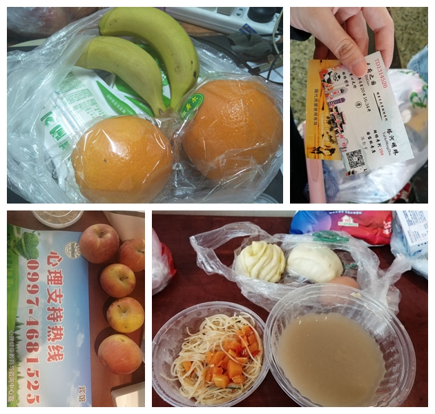 当我们到阿克苏火车站,就被学校早已安排好的接送大巴拉到了酒店休息,并领到了学校的大礼包,口罩、温度计和日常生活用品。学校给我们每个房间发送了心理支持热线,并在钉钉上也多次开展云心理疏导课堂,还为我们发放笔记本和笔,让我们专心学习,每天还会配送一份酸奶和苹果,为我们补充营养。