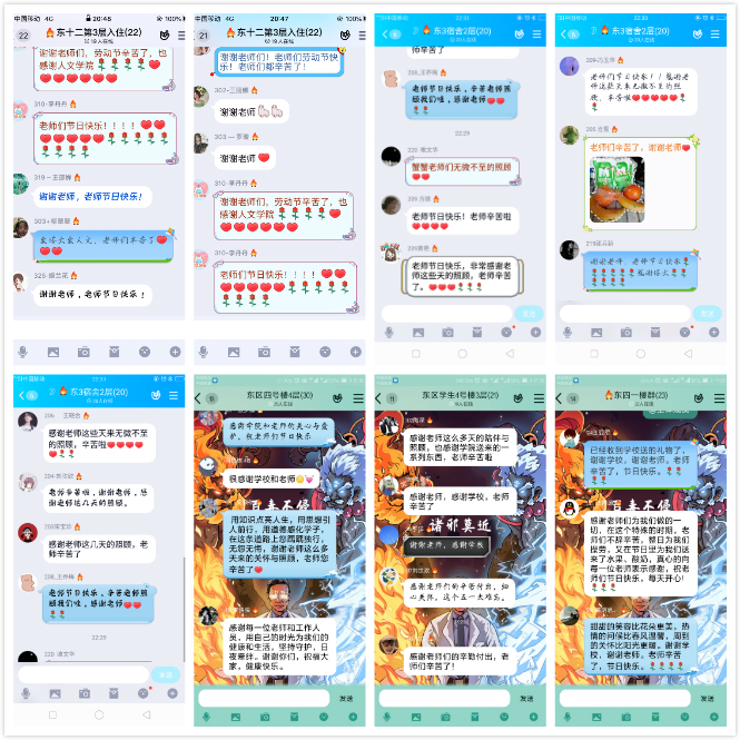 新媒体2019级王向源说:“感谢老师们为我们做的一切,在这个特殊的时期,老师们不辞辛苦,整日为我们操劳,又在节日里为我们送来了水果、酸奶,真心的向每一位老师表示感谢,也祝老师们节日快乐,每天开心!”