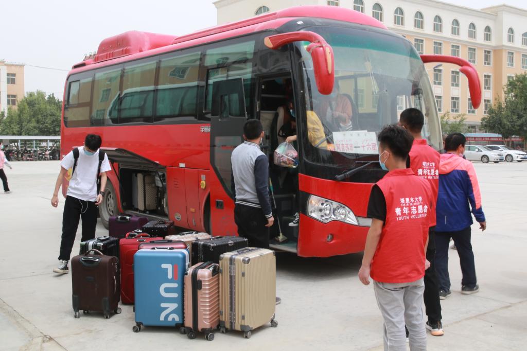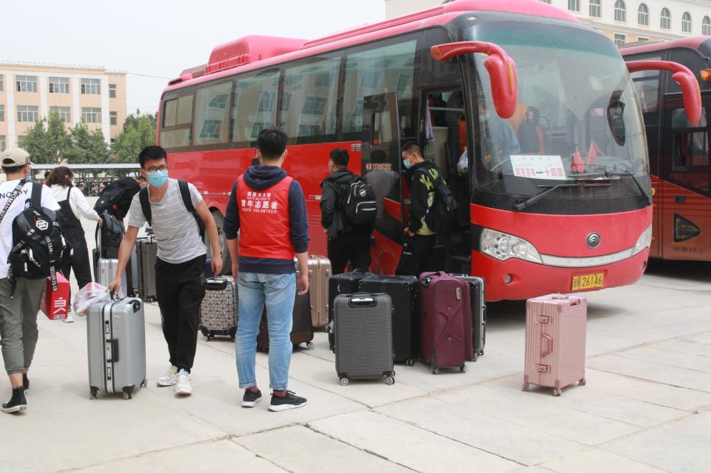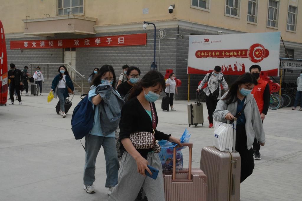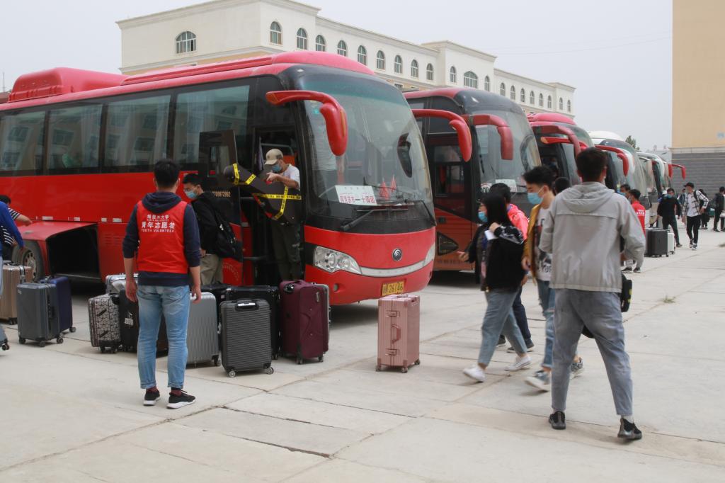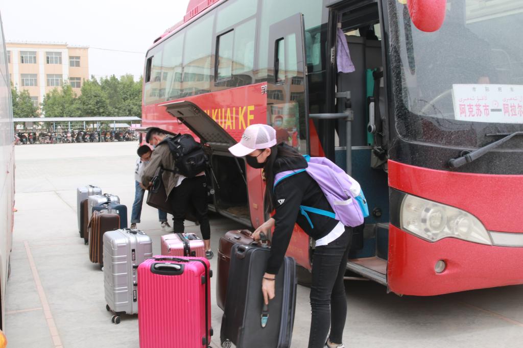 春光满校园,欢欣学子归。5月10日中午,返校大巴车缓缓驶入西校区学生公寓前,伴随着激昂的《光荣塔大》歌声,伴随着“欢迎同学们回家”的广播声,带着兴奋、激动的心情,疆内学生平安健康返校了。