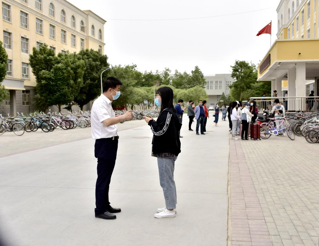 “热烈欢迎同学们平安健康返校,同学们一定要自觉服从安排、守规守矩,以健康向上的心态、积极昂扬的姿态投入校园学习生活,认真做好个人防护,学好知识练好本领。”党委副书记、校长张传辉鼓励同学们要努力在为人民服务中茁壮成长、在艰苦奋斗中砥砺意志品质、在实践中增长工作本领,不惧风雨、勇挑重担,让青春在党和人民最需要的地方绽放绚丽之花。
