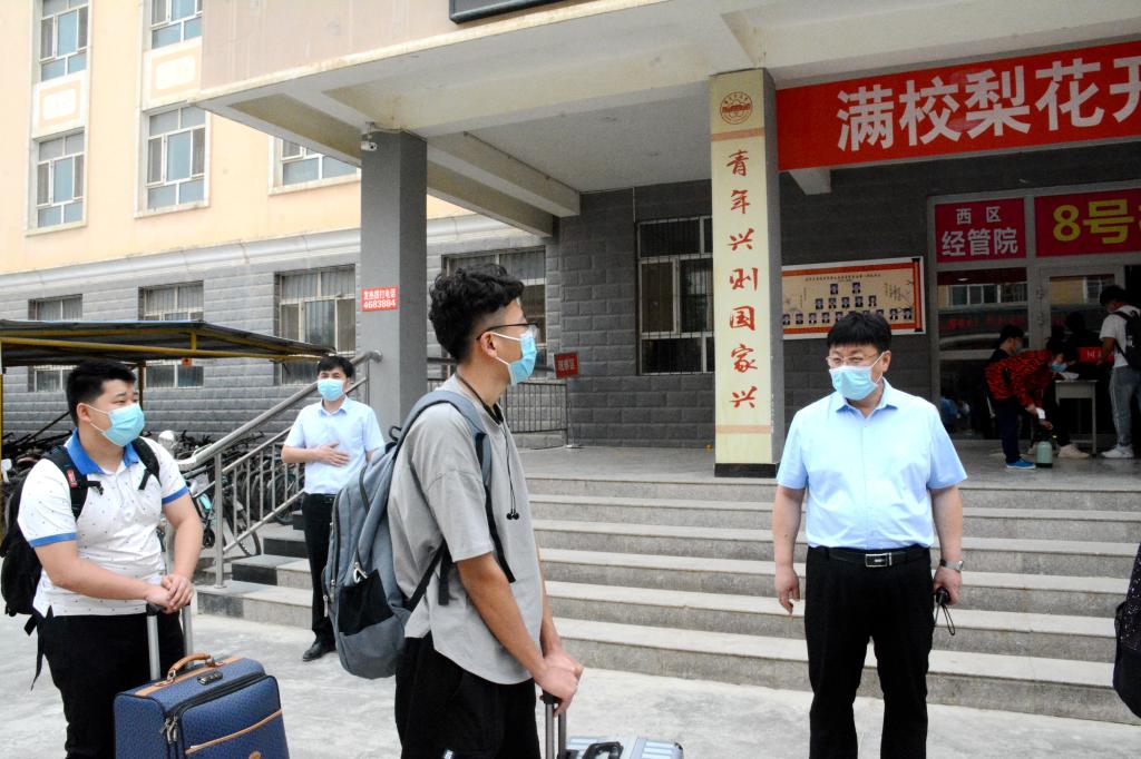 为确保学生安全有序入住宿舍,校领导来到西区学生公寓楼前现场指挥车辆停靠、信息登记、健康检测、生活服务、入住手续办理等各项工作。相隔太久,想念太深。学校领导、老师、志愿者,来到西区广场盛情迎接疆内返校学生的到来。一走下大巴车,领导们、老师们迎向前来,亲切与同学们交谈,嘘寒问暖。