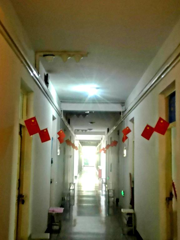 2020年的“五·一”,注定是一个不平凡的节日。西区2号宿舍楼楼道里挂上了五星红旗,迎接今年的“五·一”。