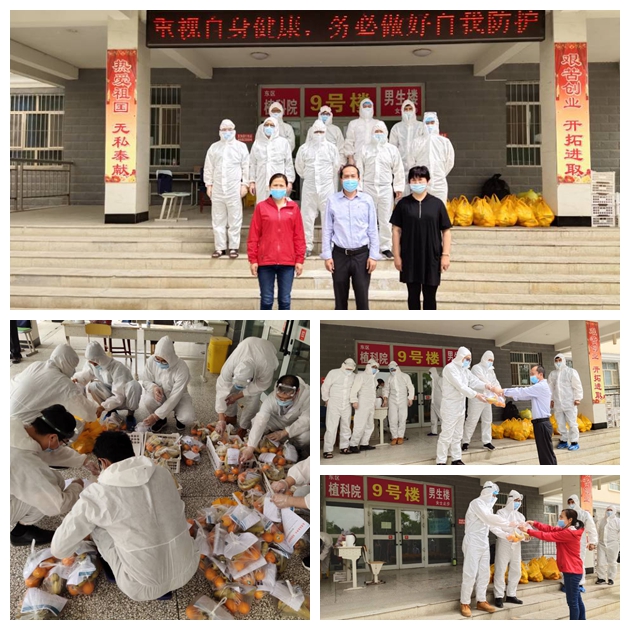 4月24日凌晨到了学校,一睁眼,就看到,车下站着很多领导和老师在等我们回家。外面有多冷呢?老师们在外面等了多久呢?宿舍楼下,又有老师守着给我们测体温,发送大礼包,对我们嘘寒问暖,“同学们,你们辛苦了,”这是我听过的最美的最暖的话;五月四日是我们青年人的节日,这一天学院领导带着各种水果来慰问我们,并送上了节日的问候,让我们感到无比的激动和幸福。