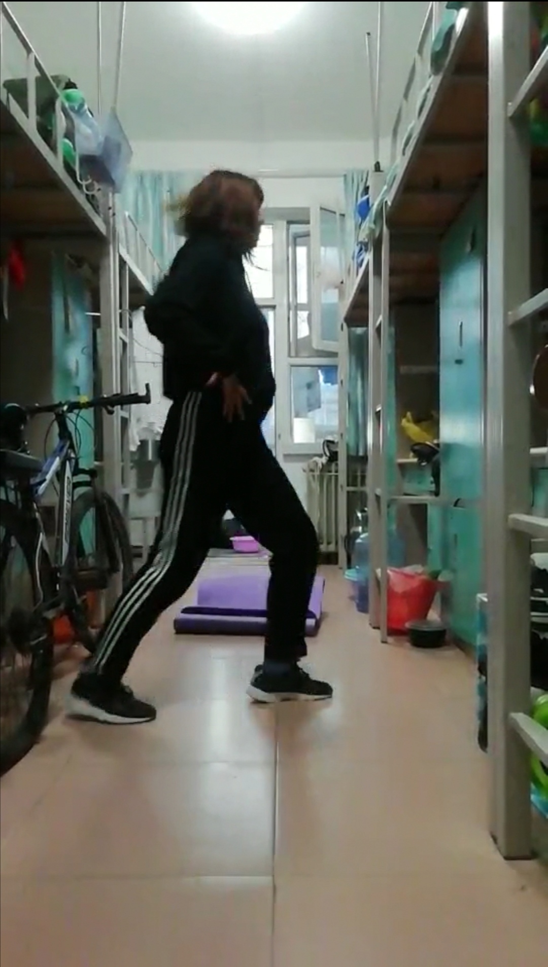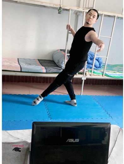 人文学院艺术与教育系迪里木热提·阿不来提老师,他从自己家里带来了垫子,对着手机认真录制着舞蹈动作,为了学生们能够看得清楚,他不断调整着角度姿势,在网络教学中也能够让学生认真学习。