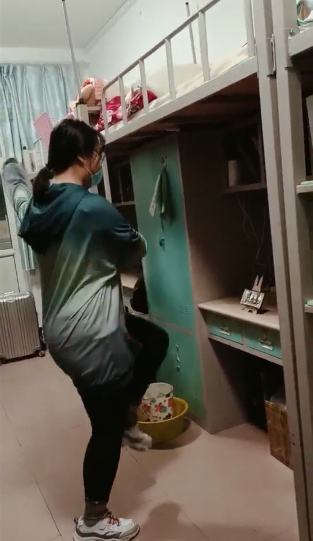 谈及课间操,志愿者动医2019级4班陈潞璐说:“每天的工作结束后,通过和老师们一起在线上做课间操,几个动作下来,不到三分钟,我就开始出汗,浑身舒畅。”