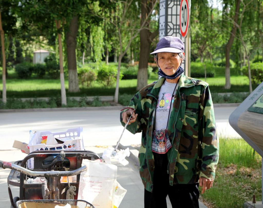 “春暖花开,杂草长势也快,如果不及时处理,杂草就会抢夺营养,限制其他植物和树木的生长。有时候脸上沾满灰尘,但觉得手握的不是杂草,而是生活和工作带给我的意义。”在西区操场前,除草的工人说。