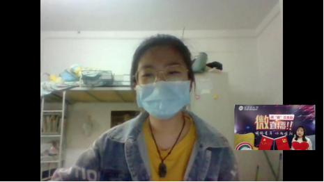 第二环节以青春之芳华告白祖国,主播现场连线网络与新媒体2018级2班睢文华,与大家分享了她在疫情发生的时候参加当地志愿者的故事,“作为参与到社区工作的一名大学生志愿者,让我对祖国有了更深的理解,最深的感受就是通过这次疫情防控工作,更加热爱我们强大的祖国!”